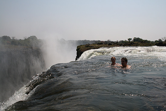 位于非洲東南部的維多利亞瀑布是世界上最大的瀑布,它有尼亞加拉大瀑布的兩倍高。盡管它的高度令人畏懼,但勇敢的人卻在瀑布頂端發(fā)現(xiàn)了一個(gè)天然泳池。在一年中的9月到12月是泳池水位最低的時(shí)候,游泳愛好者進(jìn)入到魔鬼泳池水流最緩慢的區(qū)域盡情享受泉水的涼爽,瀑布從那里傾瀉到355英尺下的大峽谷中,可謂是驚險(xiǎn)刺激。